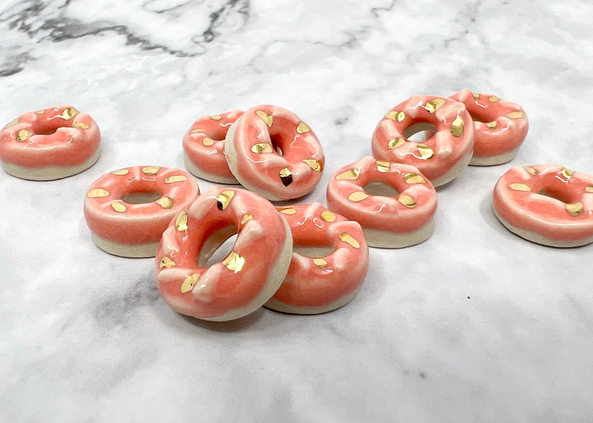 First came bananas, then pretzels and now…pink sprinkle donuts! I always say ceramics should be fun, and these are FUN!