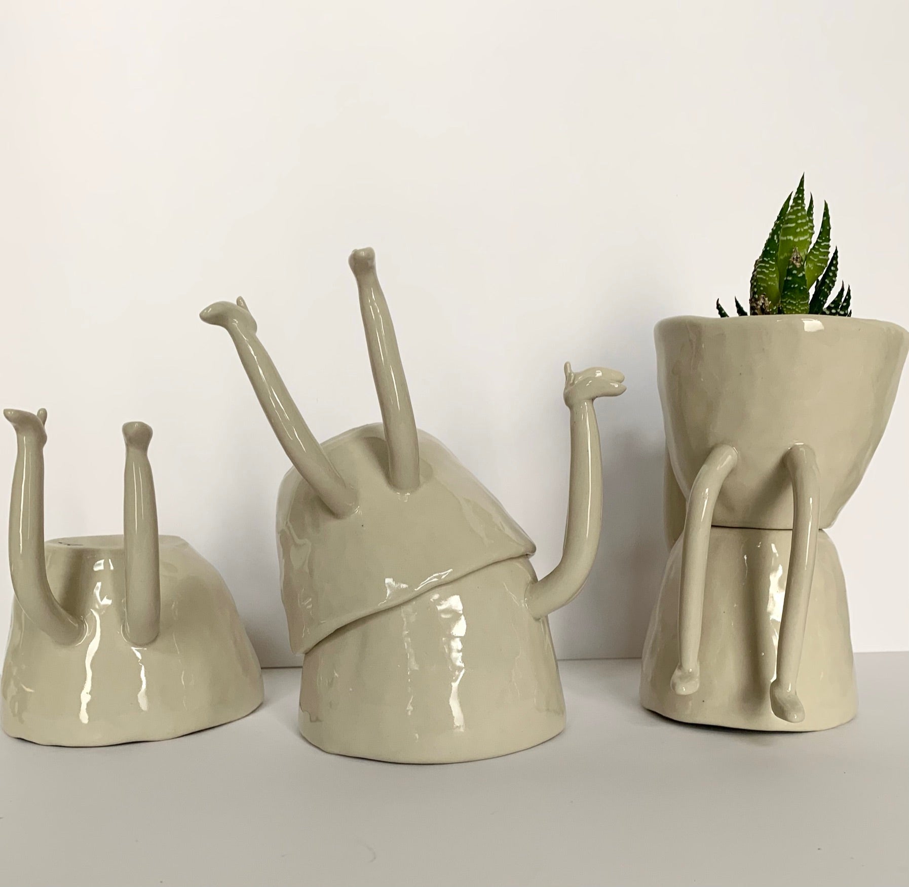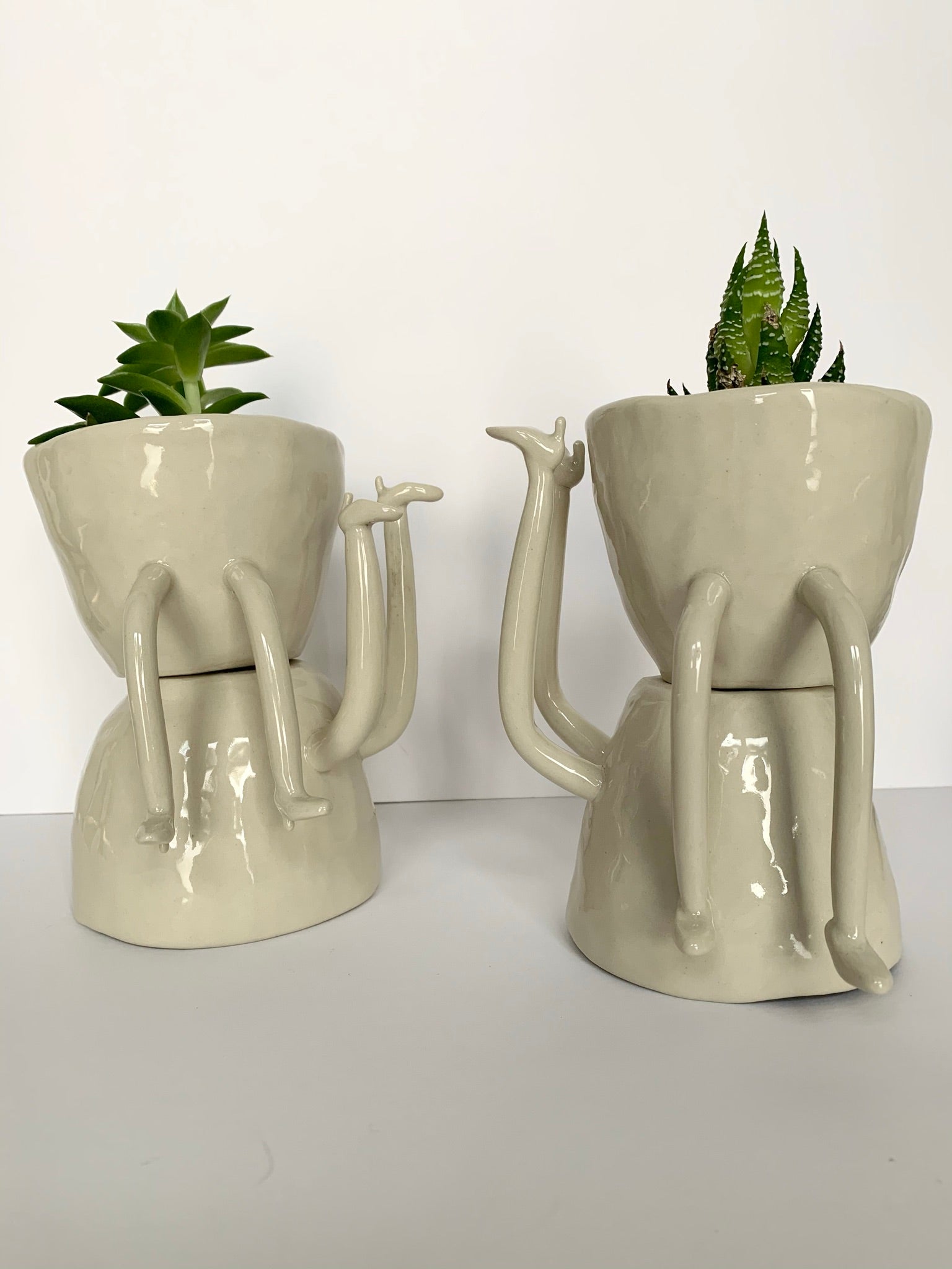 All of our ceramic Leggy Planters are hand built, which means they each have their own unique lumps, bumps and ridges. They are perfectly imperfect, much like the humans they are molded after.
